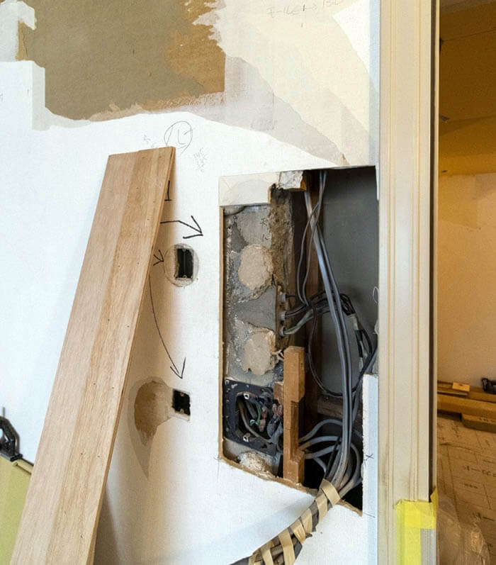 リビングの照明スイッチの為の設えの準備などが進んでいます。