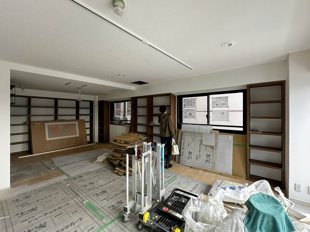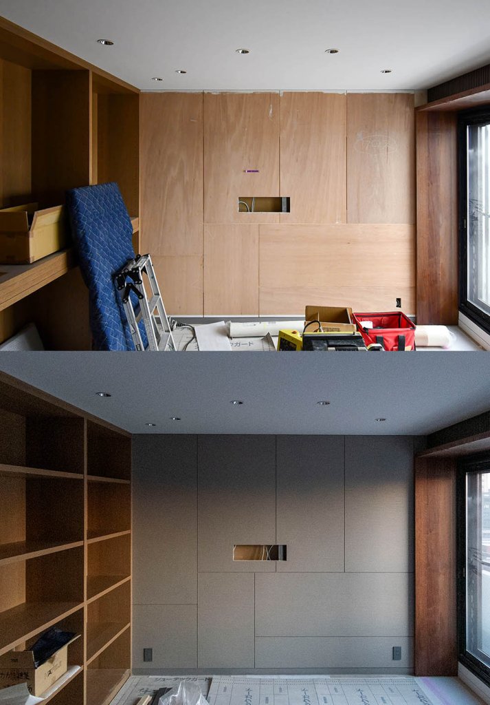 南青山の新事務所リフォームも、塗装とクロス張り、そして事務室の書棚と建具とキッチンを残すのみとなってきました。