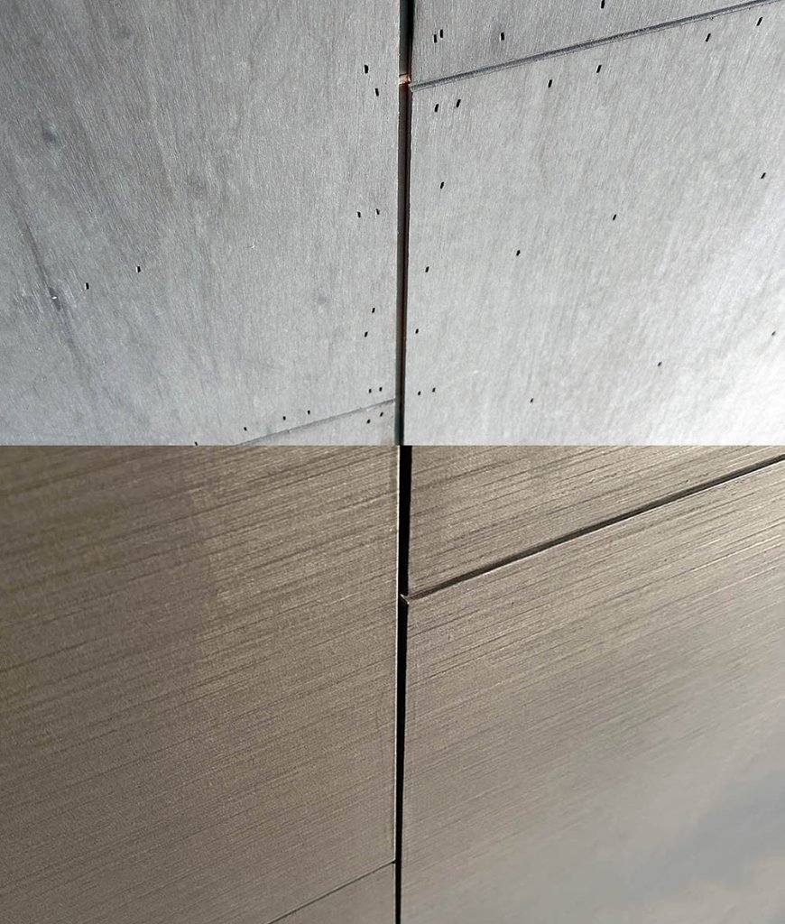 アップでディテールを見ると、このようになります。それほど材料費を掛けたデザインではありませんが、安っぽくないデザインになるので、この仕上は良く使わせてもらっています。