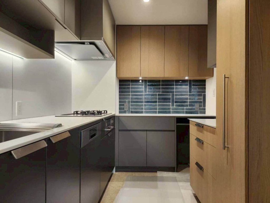 大型シンクと60センチ幅の食洗器と3口のガスコンロが入るキッチンカウンターもセットされました。こちらの甲板はスペイン産のデクトン(コセンティーノ社)のものとなります。