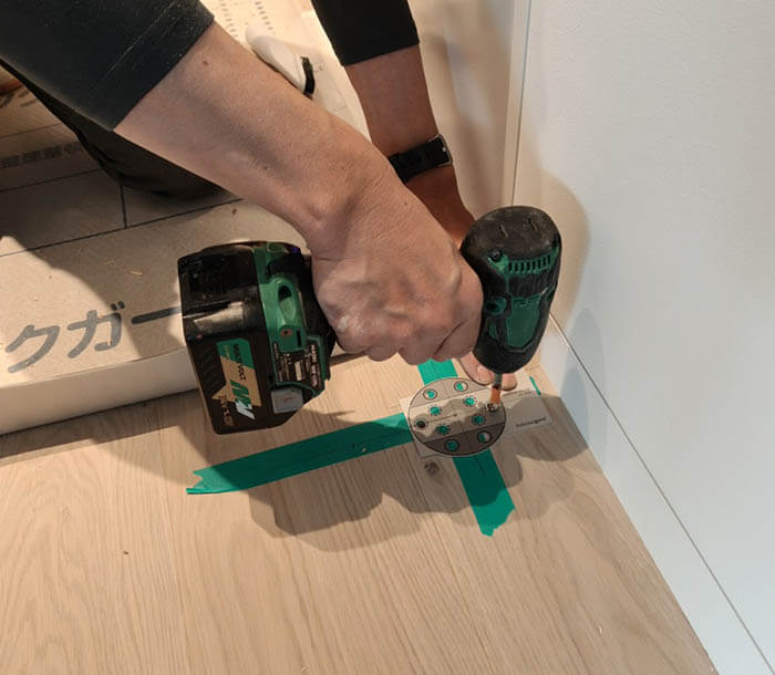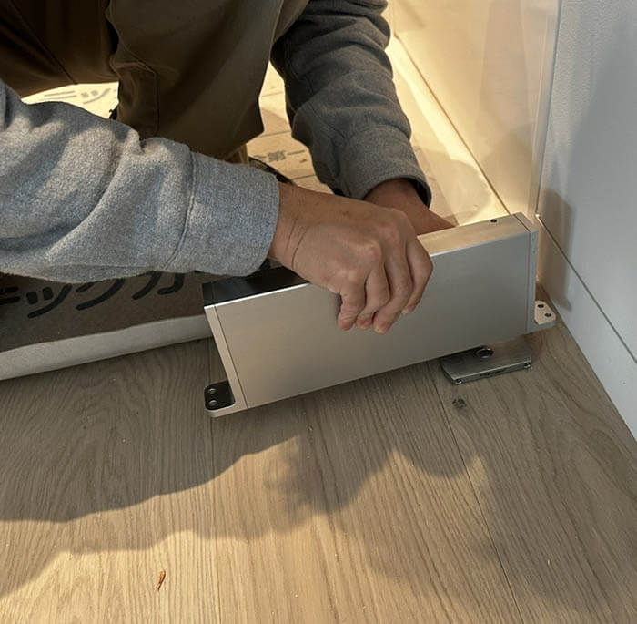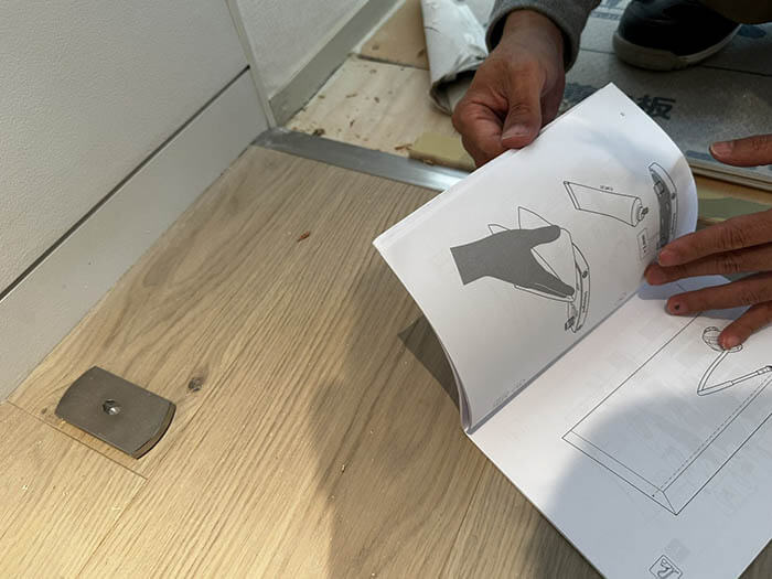 事前に床につけておくのは、このようなシンプルな軸受け金物だけとなります。