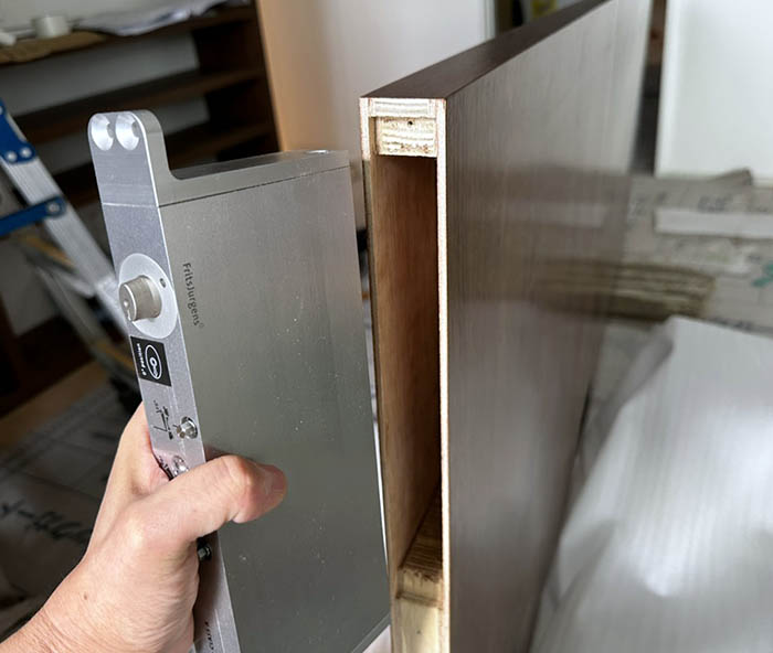 建具に埋め込む前の金物を当てて貰った様子です。