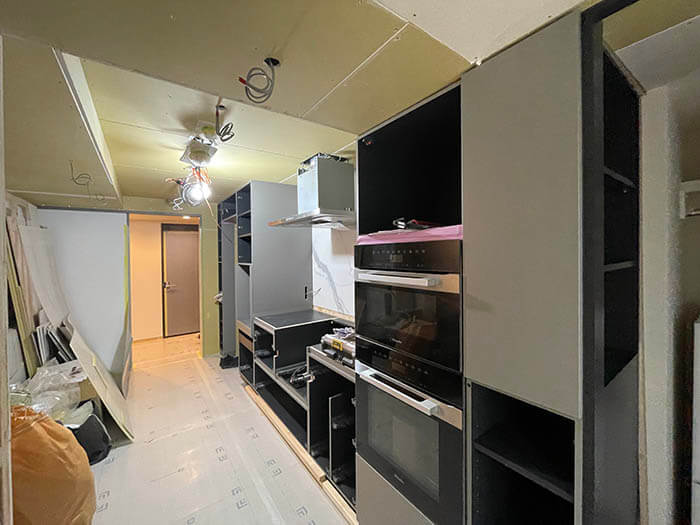 キッチンが全て解体された状況です。