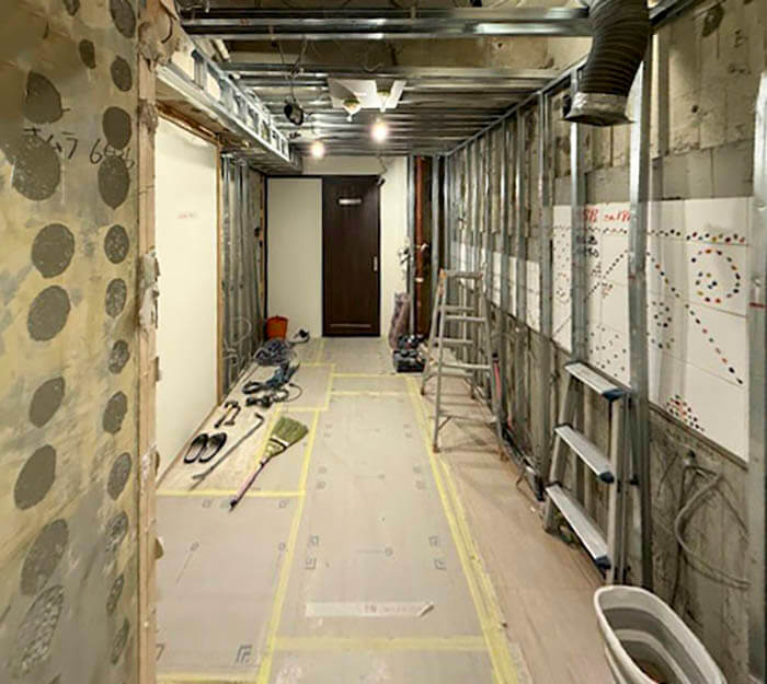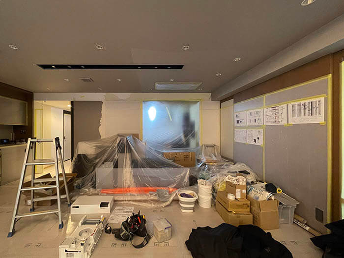 通常は、住まいながらのリフォームの場合は、大工さんや設備の職人さんたちが入る箇所を区切って、養生シートで区画してしまえば、職人さんたちの出入りやホコリの飛散の問題をある程度解決できるのですが、実際には音や振動、細かな粉塵まですべてを遮断することは難しく、日常生活との共存をどう設計するかが重要になります。