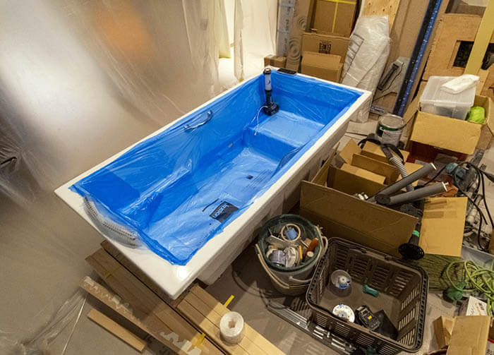 そこにこのジャクソンの浴槽を設置して、水栓類を取り付けてゆけば、キッチンよりかなり先に浴槽の工事が完成しそうです。