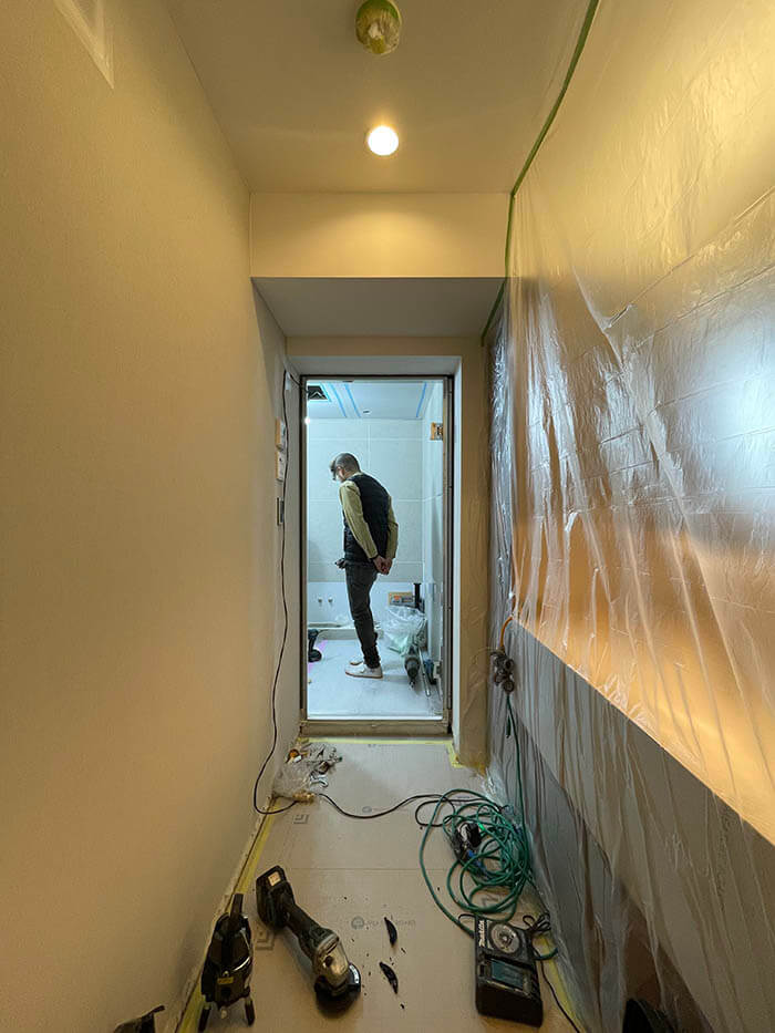因みに、浴室については、主寝室奥にシャワー室を使えれば何とかなりますが、キッチンは工事の期間は全く使えなくなります。別荘への一次避難や外食を使って何とかしますとのことで、工事が始まりました。このように水回りの工事では、生活動線そのものが一時的に失われるため、事前に代替手段をどこまで現実的に用意できるかが、住みながらリフォームの成否を分けるポイントになります。