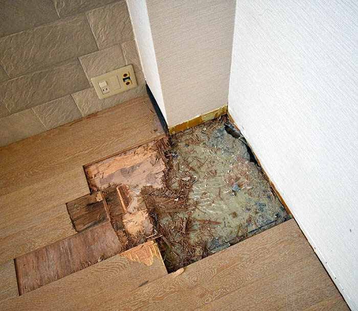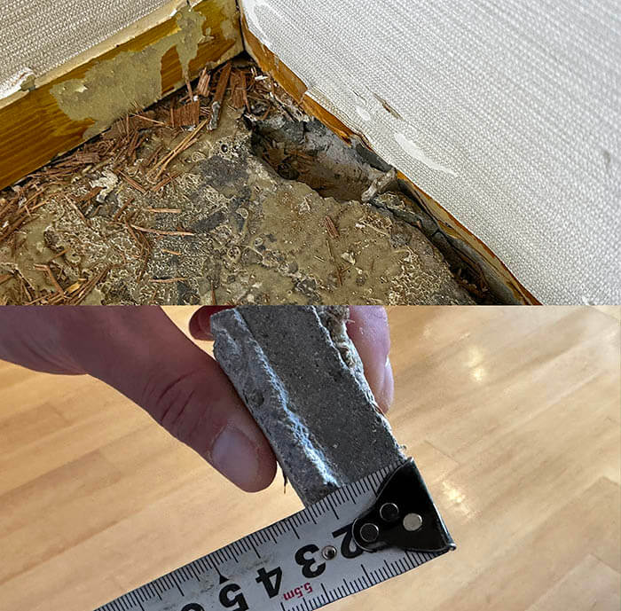 外れた個所と、外れたシンダーコンの厚みを実測した様子です。これで床下の情報がある程度わかりました。