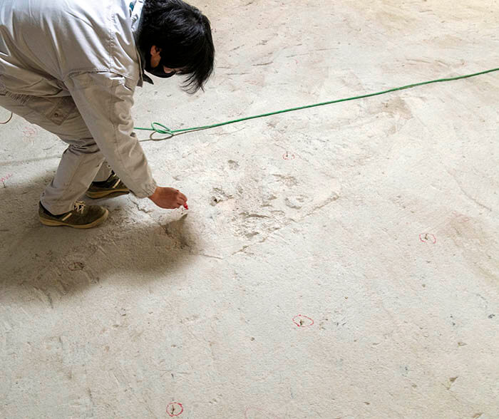 ここからは改めてレーザー水平器を使って、床スラブの不陸を調査してもらいました。