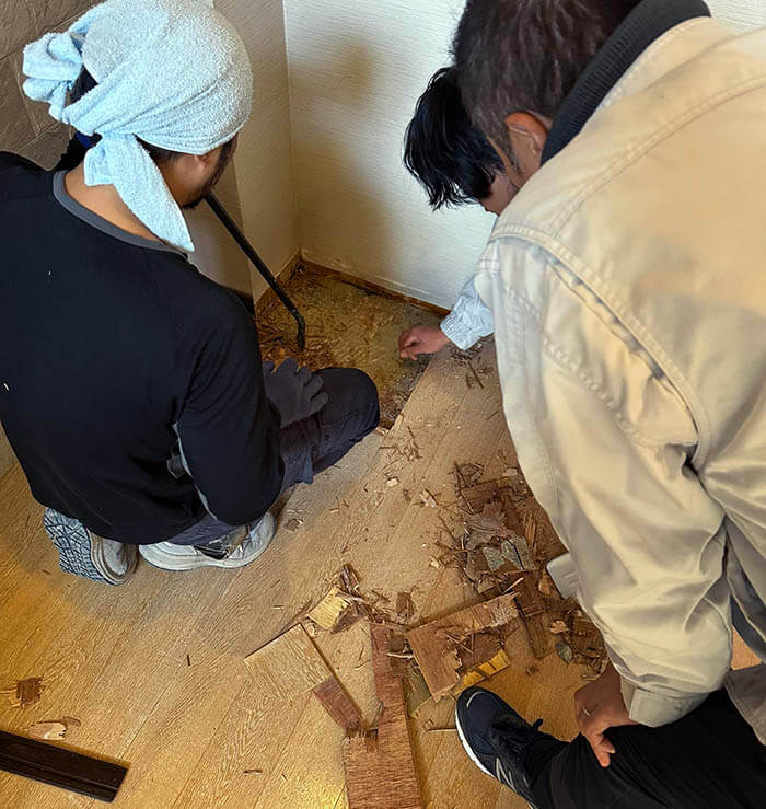 そこでリノベーション工事に向けて仮住まいのお引っ越しが終わった後に再度部分解体をすることとなりました。ガゲナウで進めることになった場合は、お引き渡しまでのスケジュールを考えると、すぐにでも発注しないといけないタイミングになってしまったのです。