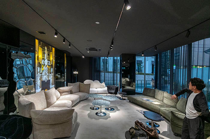 エドラのショールームでは展示が変わっており、スタンダードソファはより大型の白っぽいものに変わっていました。